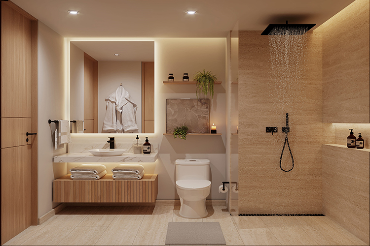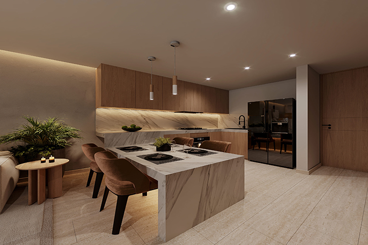 Cada unidad ha sido diseñada con materiales de la más alta calidad: suelos de mármol, detalles en madera fina y cocinas completamente equipadas con electrodomésticos de última generación. Los ventanales de piso a techo permiten que la luz natural inunde los espacios, creando ambientes amplios, cálidos y contemporáneos.